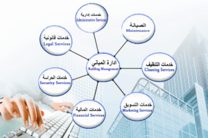 الخدمات الادارية التي تقدم لإدارة المباني المستفيد منها المالك والمستأجر او المستثمر طبــــــاعة وتسجيل والتوثيق العقود الايجار الاستثمار لدى الجهات الحكومية المختصة تجديد شهادات الدفاع المدني ومتابعة الشركات المتعاقدة وكافة الجهات الحكومية المتعلقة بالعقار وتخليص الاجراءات .